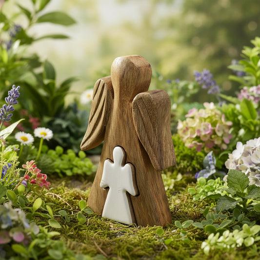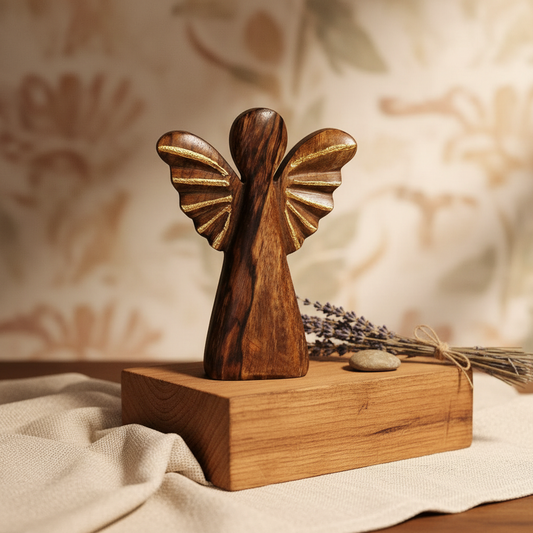 Handcrafted Mango Wood Angel With Gold Wings - Elegant Home Decor