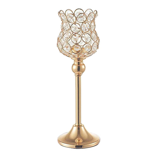 Elegant Golden Crystal Candle Holders - High-Quality Iron & Crystal, Perfect for Weddings & Home Decor