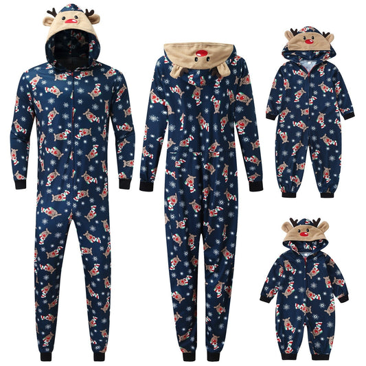 Christmas Family Matching Hooded Romper Set - Cozy Parent-Child Outfit in Festive Prints