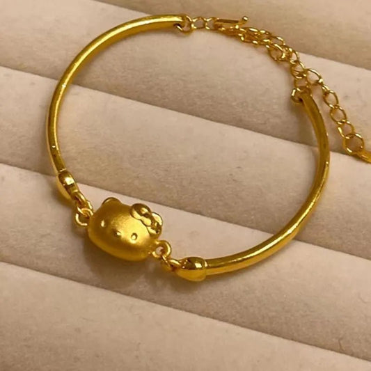 Hello Kitty Gold Bangle - Luxury Sanrio Wedding Jewelry Gift for Fashion Lovers