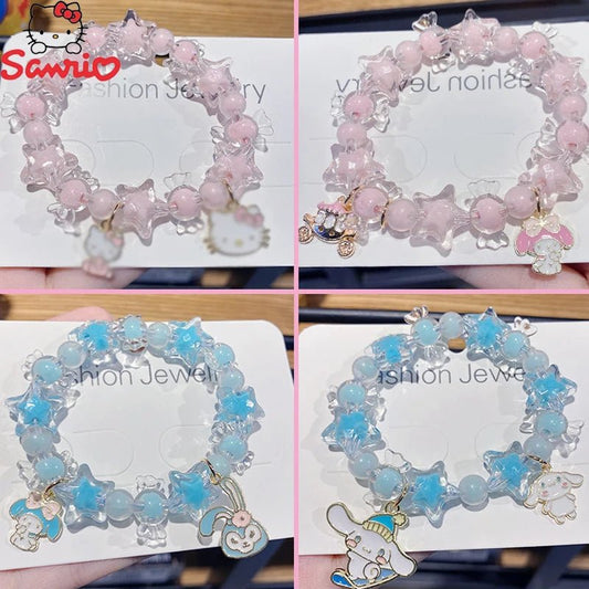 Hello Kitty Y2K Crystal Bracelet with Cinnamoroll & Melody - Kawaii Anime Jewelry