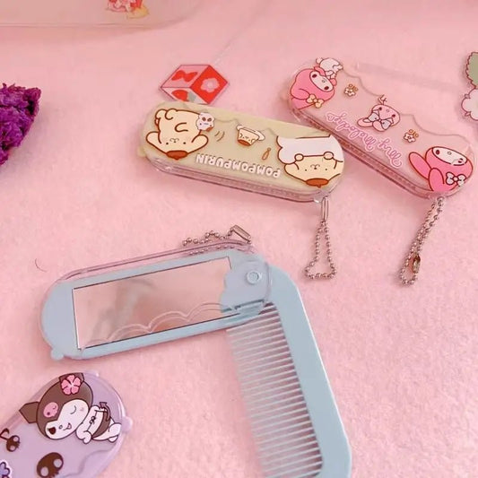Hello Kitty Folding Comb & Mirror Set | Sanrio Travel Accessories for Anime Fans