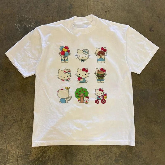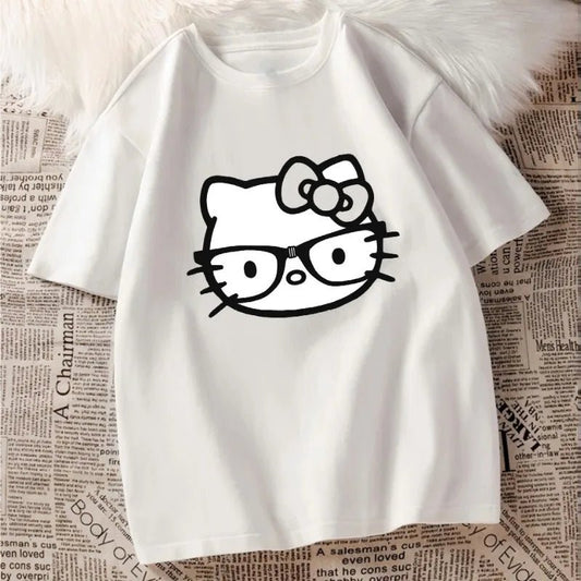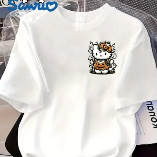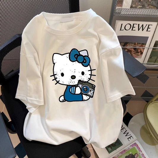 Hello Kitty Sanrio Cute Cartoon Cotton T-Shirt - Summer Loose Fit Crew Neck Tee