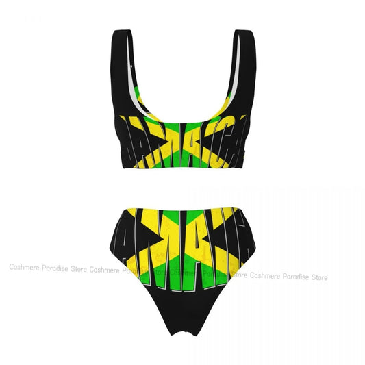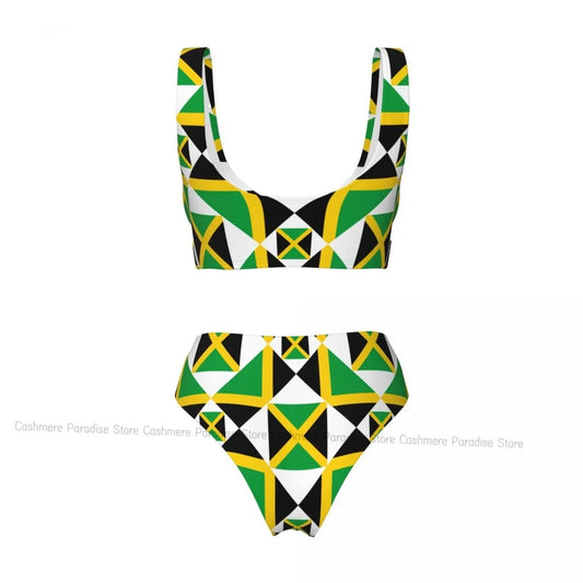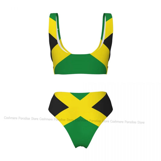 Vibrant Jamaican Flag Bikini Set - Stylish Women's Swimsuit for Beach and Surf Adventures