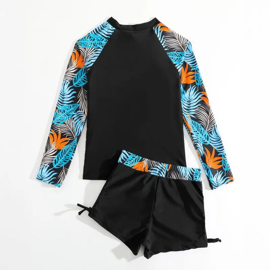 Girls Long Sleeve UV Protection Swimsuit Shorts | Printed Beach Wear